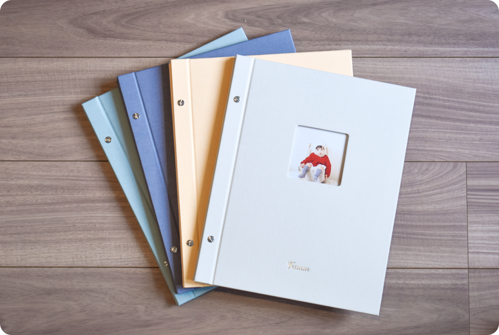 アイボリー・インディゴ・コーラル・くるみの4種類からあなたの1冊を選んでください。