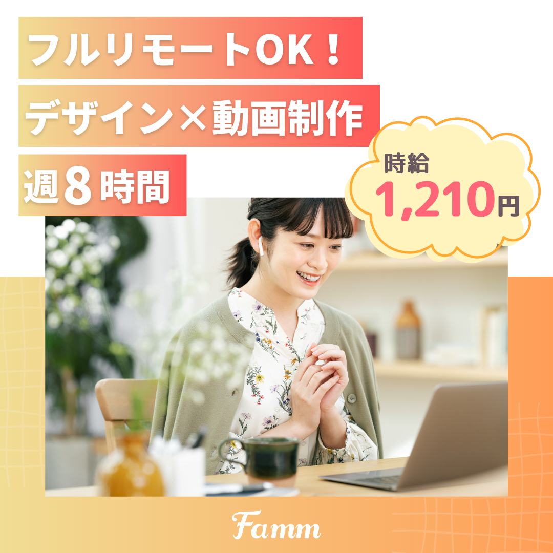 【フルリモート/週8時間】デザイン×動画制作/時給1,210円