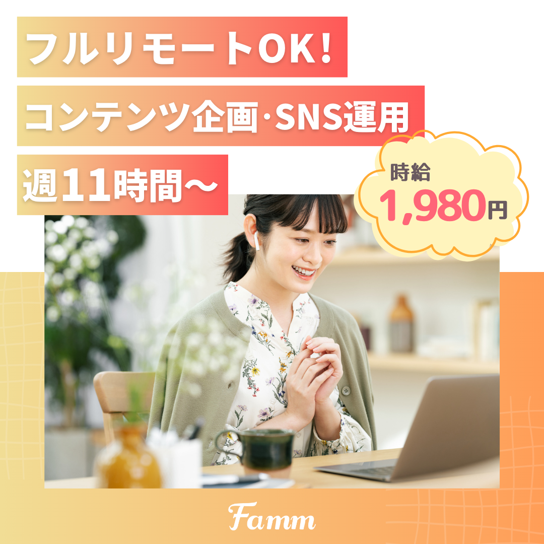 【フルリモート/週11時間〜】コンテンツ企画・SNS運用/時給1,980円