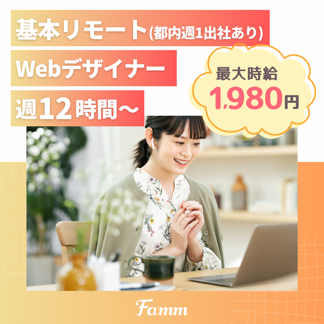 【基本リモート(都内週1出社あり)/週12時間〜】Webデザイナー/最大時給1,980円