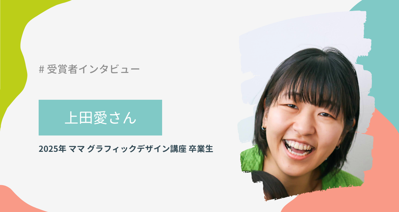今回は2025年にグラフィックデザイン講座を受講し、受講料無料キャンペーンに選出された上田愛さんにお話を伺いました。