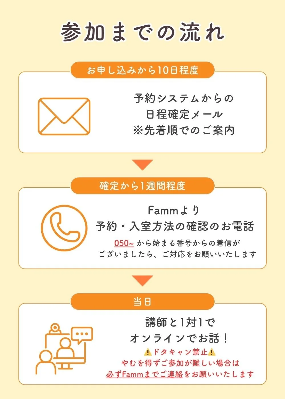 ・無断キャンセルはお断りしております。事前に講師またはFammまで必ずご連絡をお願いします。
