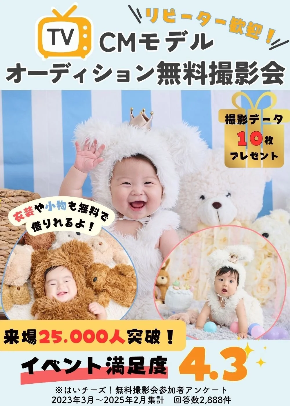 メルマガから撮影会にお申し込みいただき、ご参加されたお子さまの中から、グランプリを数組選出させていただきます。