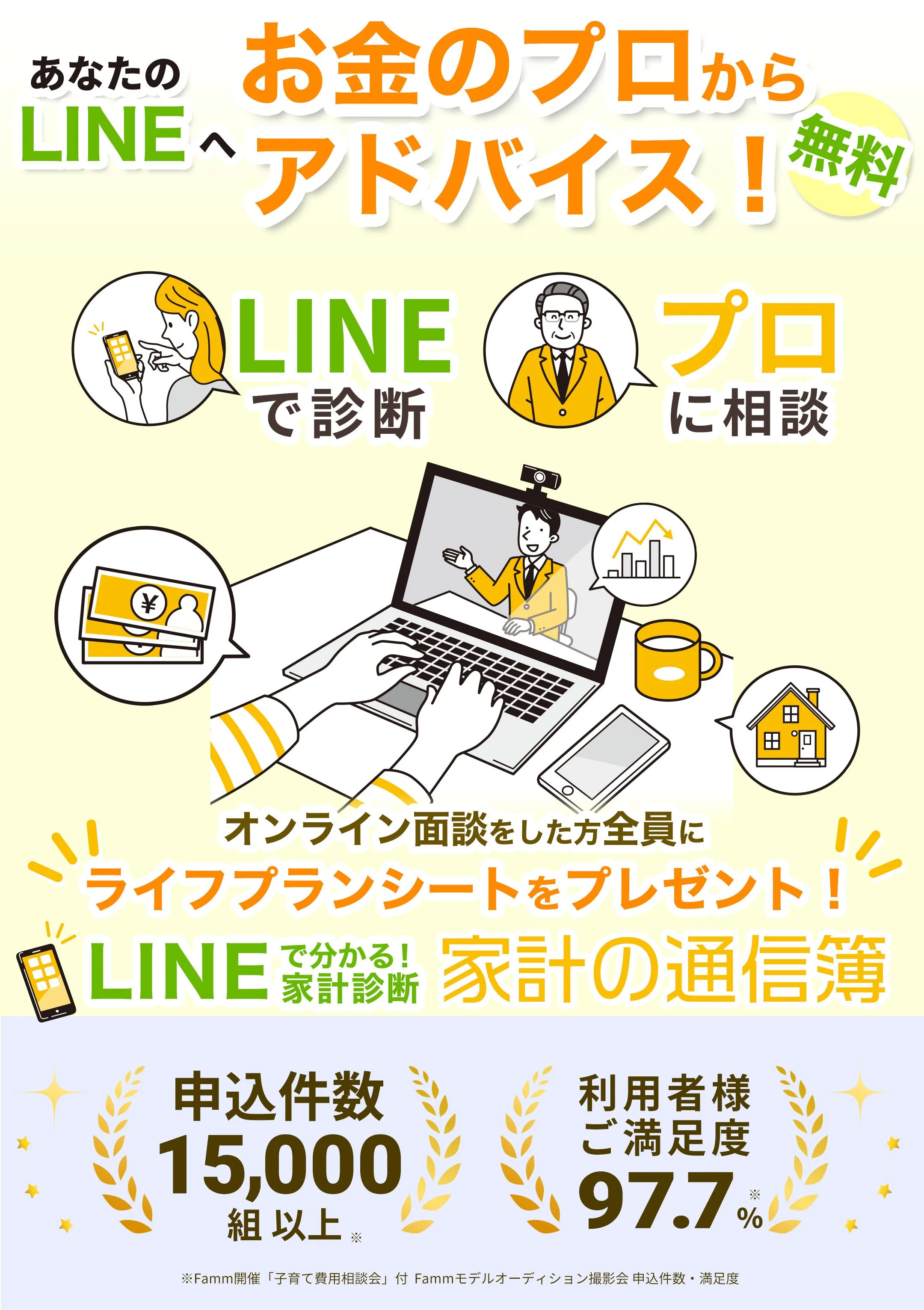 「Famm 家計の通信簿」では、家計の「今」と「未来」について、プロからアドバイスが受けられる!