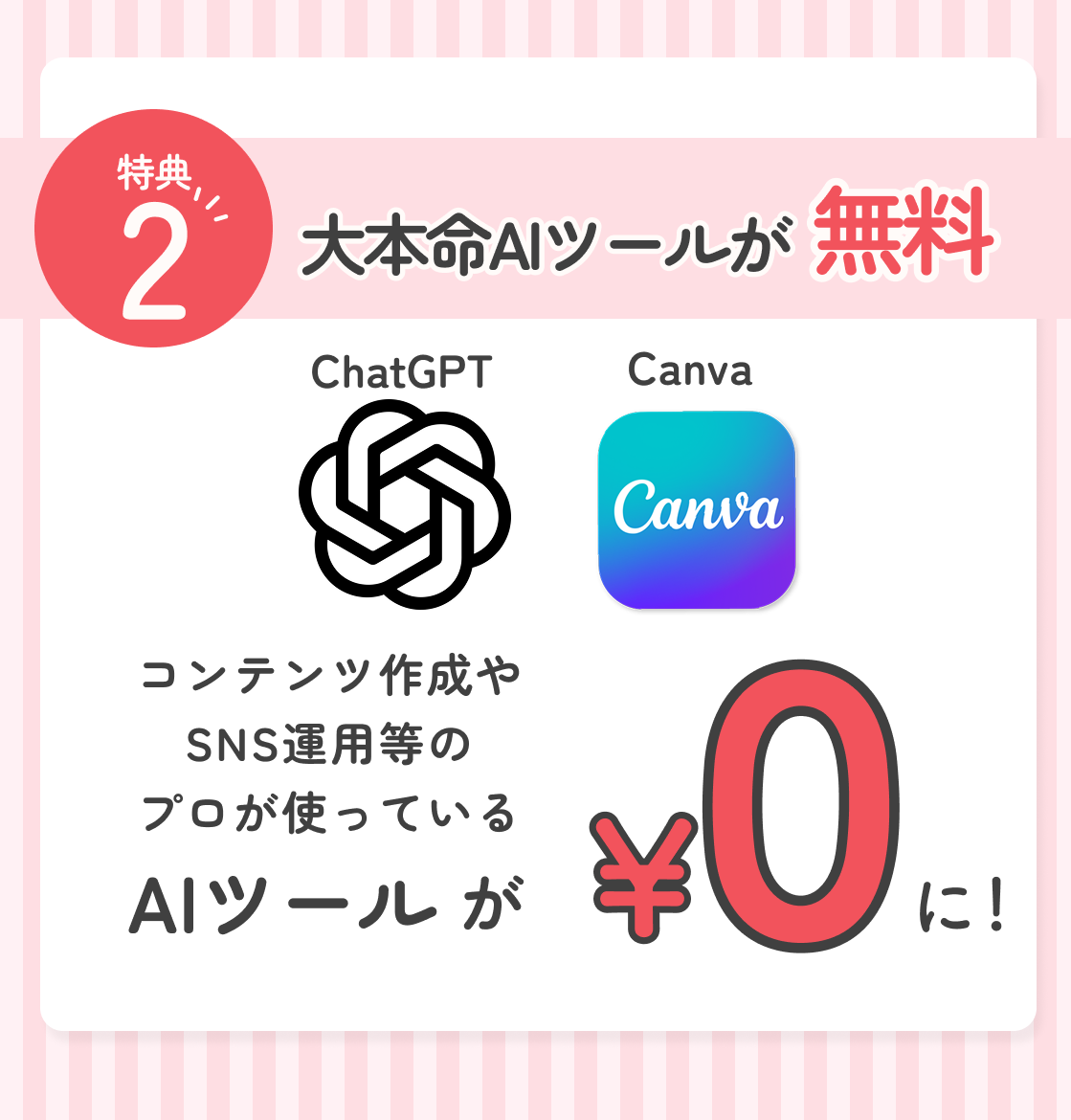 講座で活用する有料AIツールは、特典として提供させていただきますのでご安心ください。