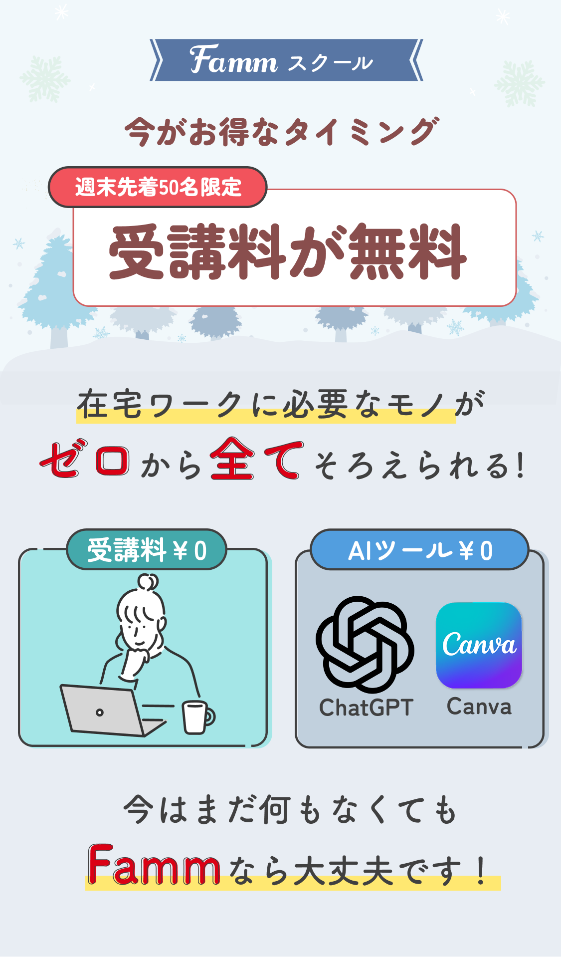 Fammスクールでは『未経験のママでも仕事につながる基礎を最短で身につける』をゴールにしています。