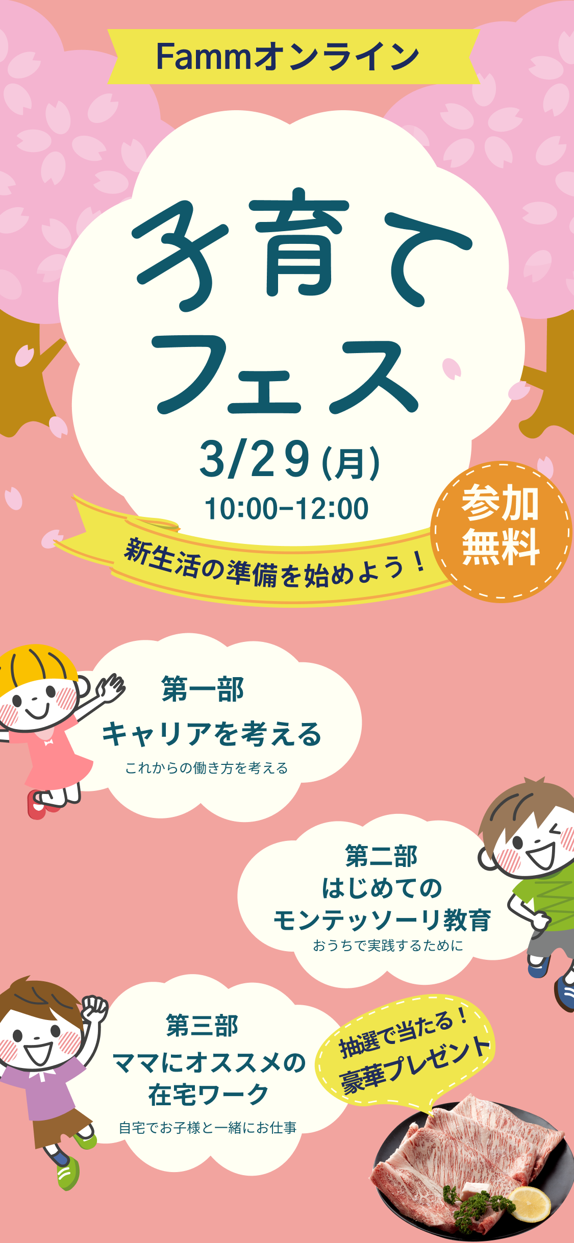 【申込人数400名突破!】3/29(月)参加無料!Fammオンライン子育てフェス