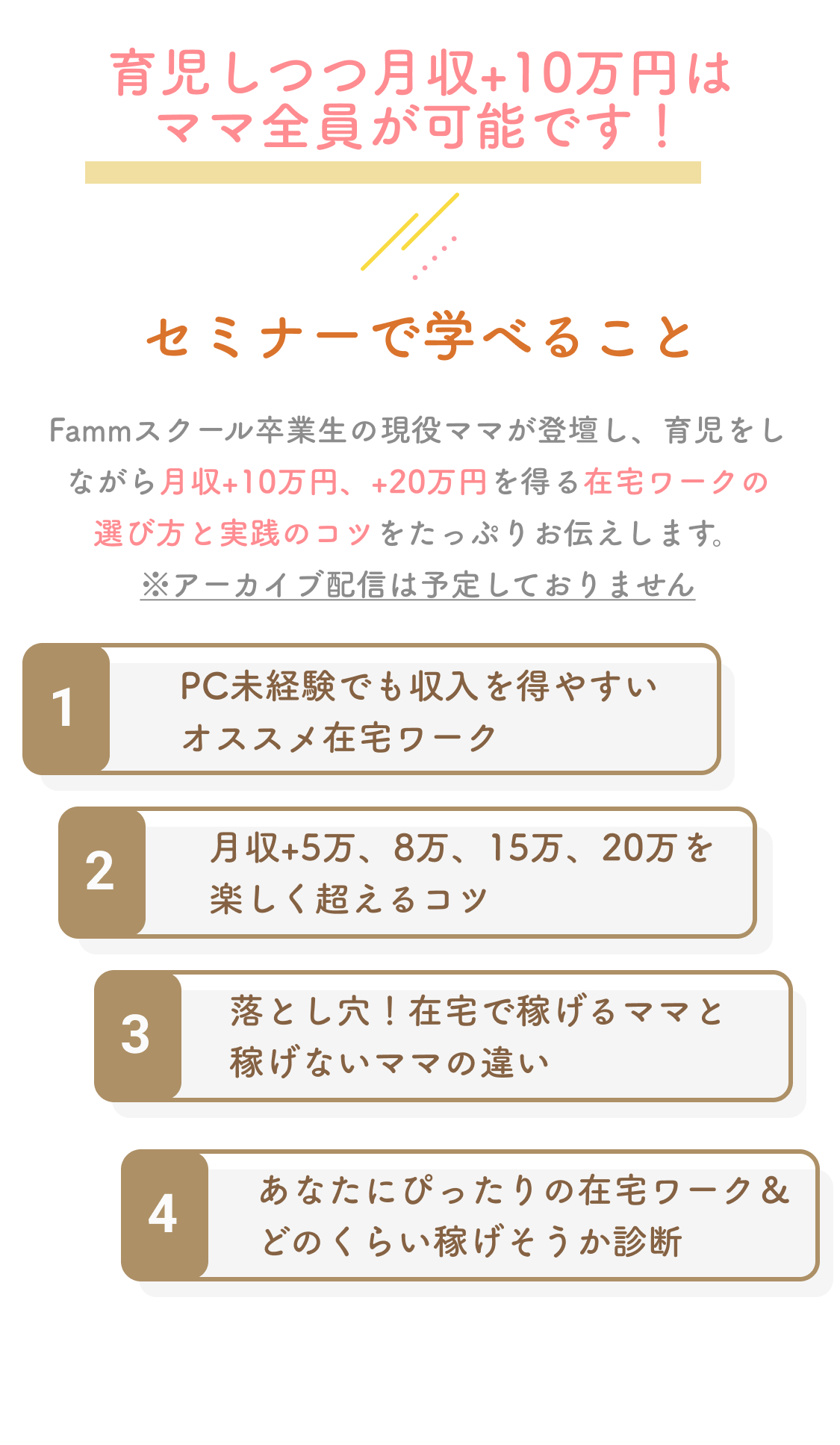 【オンラインセミナー5/28(水)開催】子どもと毎日一緒にいながら、在宅で月収10万円を得る働 (Copy)