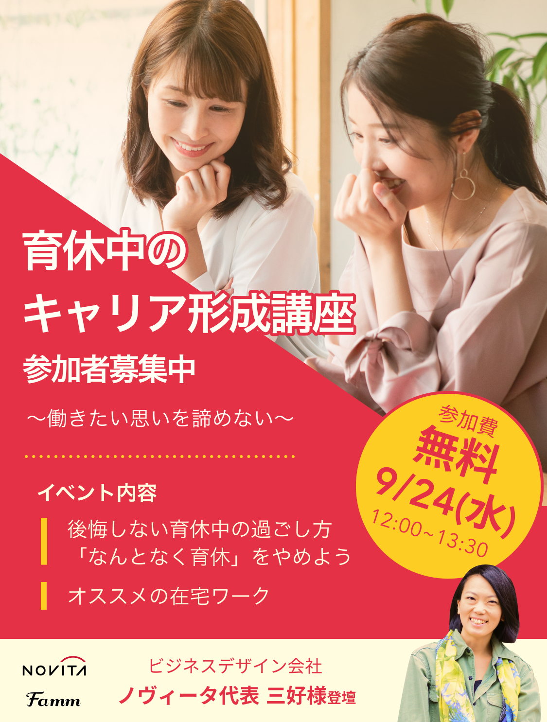 事前申込250名突破!9/24(木)開催・参加費無料!ノヴィータ×Famm共同主催「働きたい思いを諦めない!育休中のキャリア形成講座」