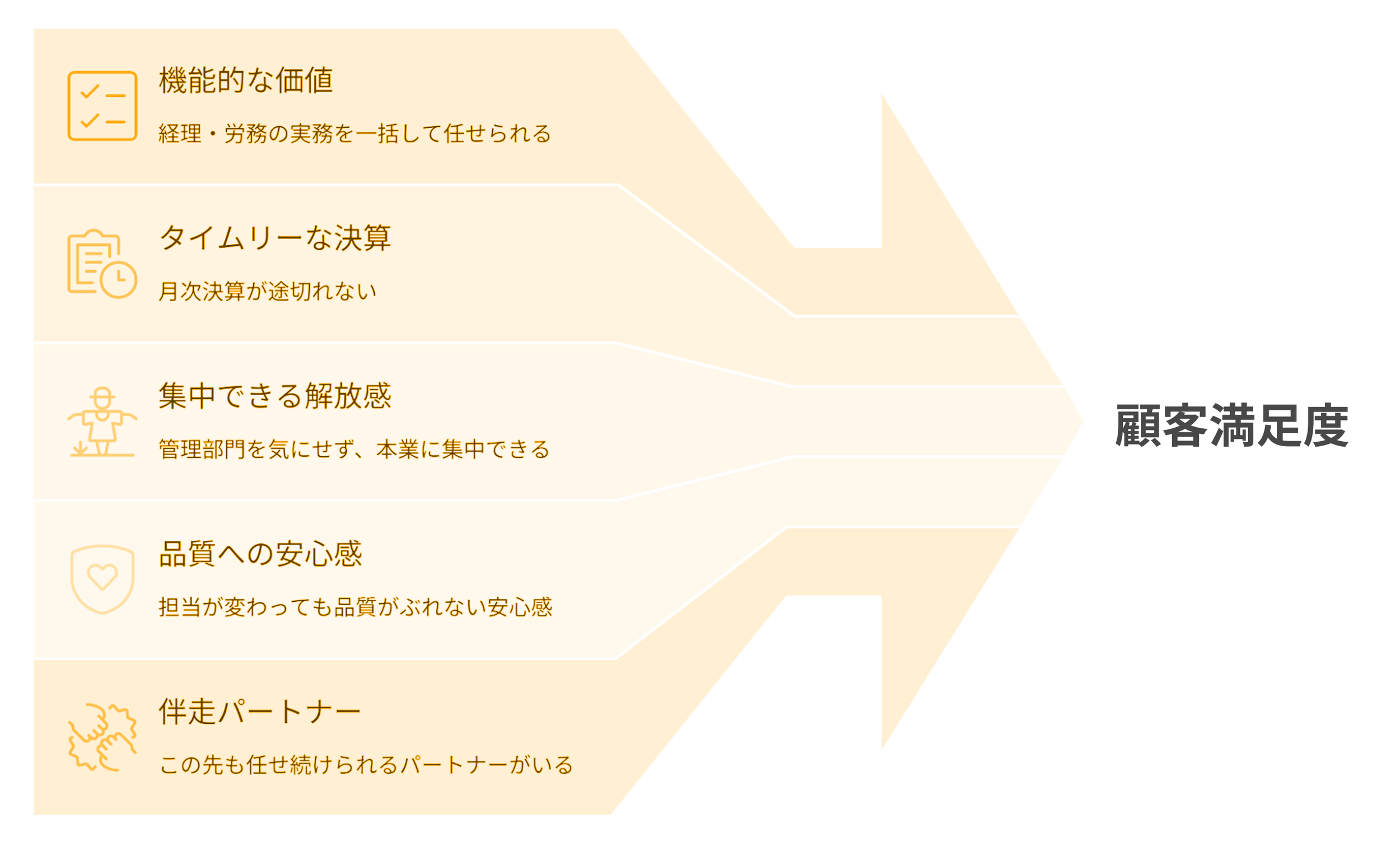 私たちは、企業の成長を支える基盤として、経理・会計・労務を「誠実に、長く任せ続けられる状態」にすることをミッションとしています。その結果として、短期的な工数消化ではなく、継続されることで“成長し持続化する”バックオフィスを一緒につくります。
