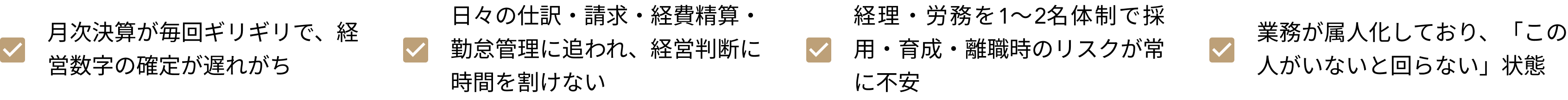 経理・労務を1〜2名で抱える体制では、欠員発生時のリスクが常につきまといます。BPOに委託することで、専門チームで体制を構築。そのため、急な休職・退職があっても業務を止めない運用が可能になります。